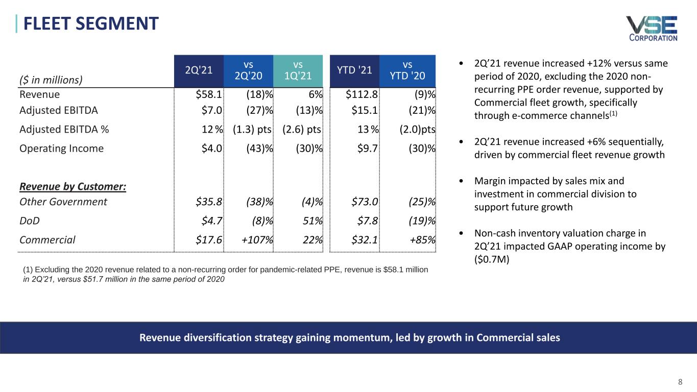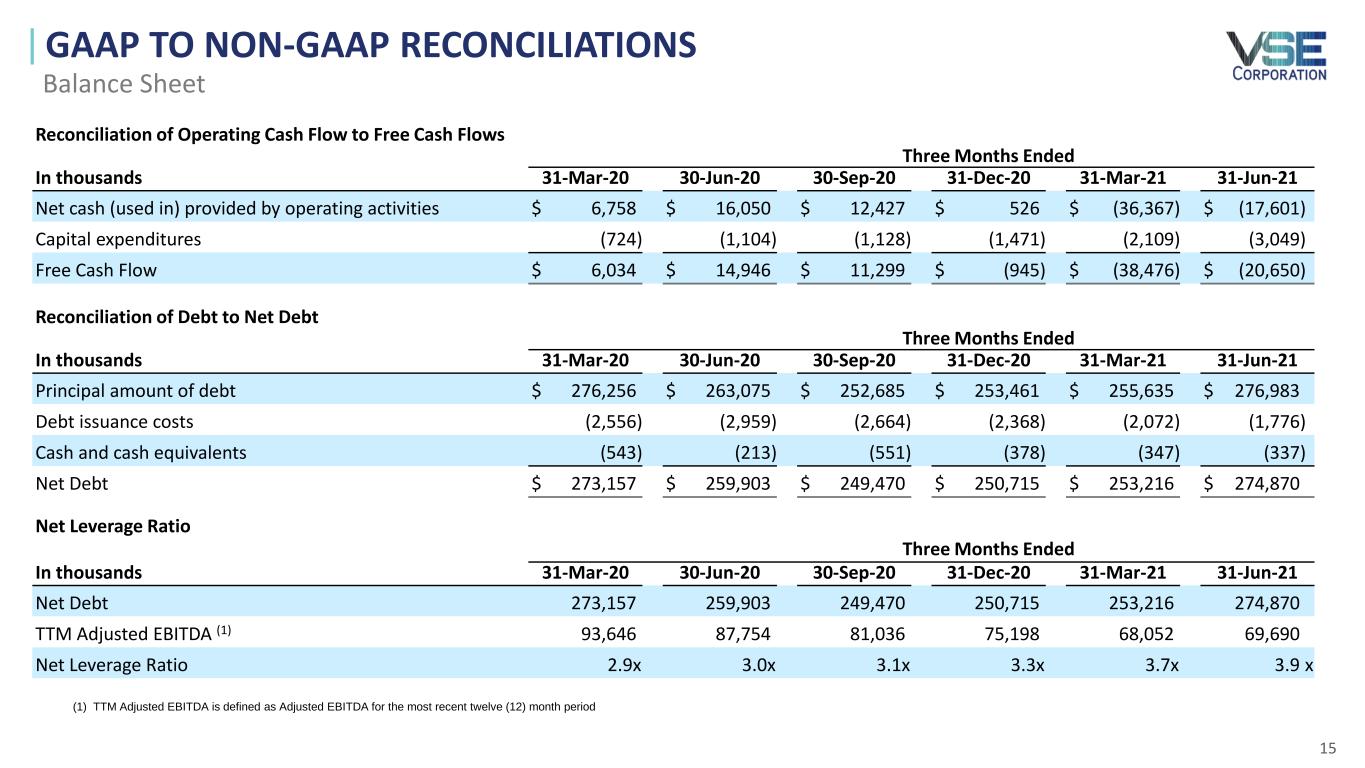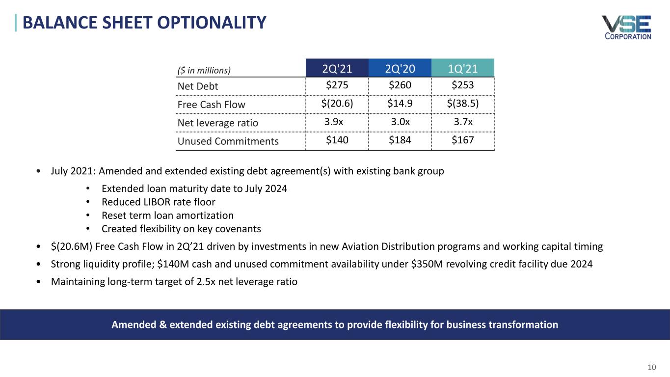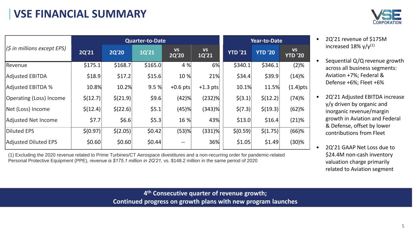 2 This presentation contains statements that, to the extent they are not recitations of historical fact, constitute "forward looking statements" within the meaning of Section 27A of the Securities Act of 1933, as amended (the “Securities Act”), and Section 21E of the Exchange Act. All such statements are intended to be covered by the safe harbor provisions for forward-looking statements contained in the Private Securities Litigation Reform Act of 1995 and includes this statement for purposes of such safe harbor provisions. “Forward-looking” statements, as such term is defined by the SEC in its rules, regulations and releases, represent VSE Corporation’s (the “Company”) expectations or beliefs, including, but not limited to, statements concerning its operations, economic performance, financial condition, growth and acquisition strategies, investments and future operational plans. Without limiting the generality of the foregoing, words such as “may,” “will,” “expect,” “believe,” “anticipate,” “intend,” “forecast,” “seek,” “plan,” “predict,” “project,” “could,” “estimate,” “might,” “continue,” “seeking” or the negative or other variations thereof or comparable terminology are intended to identify forward-looking statements. These statements speak only as of the date of this presentation and the Company undertakes no ongoing obligation, other than that imposed by law, to update these statements. These statements appear in a number of places in this presentation, and relate to, among other things, the Company’s intent, belief or current expectations with respect to: its future financial condition, results of operations or prospects; our business and growth strategies; and our financing plans and forecasts. You are cautioned that any such forward-looking statements are not guarantees of future performance and involve significant risks and uncertainties, and that actual results may differ materially from those contained in or implied by the forward-looking statements as a result of various factors, some of which are unknown, including, without limitation the factors identified in the Company’s reports filed or expected to be filed with the SEC including its Annual Report on Form 10-K for the year ended December 31, 2020. Forward-Looking Statements Non-GAAP Financial Measures In addition to the financial measures prepared in accordance with generally accepted accounting principles (GAAP), this document also contains Non-GAAP financial measures. We consider Adjusted Net Income, Adjusted EPS (Diluted), EBITDA, Adjusted EBITDA, trailing-twelve month Adjusted EBITDA, net debt and free cash flow (FCF) as non-GAAP financial measures and important indicators of performance and useful metrics for management and investors to evaluate our business’s ongoing operating performance on a consistent basis across reporting periods. Adjusted Net Income represents Net Income adjusted for discrete items. Adjusted EPS (Diluted) is computed by dividing net income, adjusted for the discrete items and the related tax impacts, by the diluted weighted average number of common shares outstanding. EBITDA represents net income before interest expense, income taxes, amortization of intangible assets and depreciation and other amortization. Adjusted EBITDA represents EBITDA adjusted for discrete items. Net debt is defined as total debt less cash and cash equivalents. Free cash flow represents operating cash flow less capital expenditures. Net leverage ratio is calculated as net debt divided by trailing twelve month Adjusted EBITDA. The reasons why we believe these measures provide useful information to investors and a reconciliation of these measures to the most directly comparable GAAP measures and other information relating to these Non-GAAP measures are included in the supplemental schedules attached.