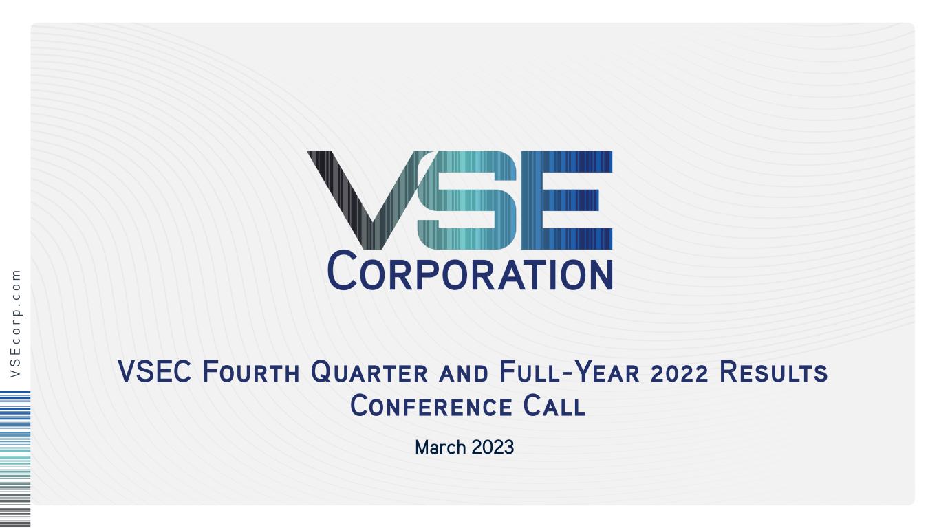 V S E c o r p .c o m VSEC Fourth Quarter and Full-Year 2022 Results Conference Call March 2023
