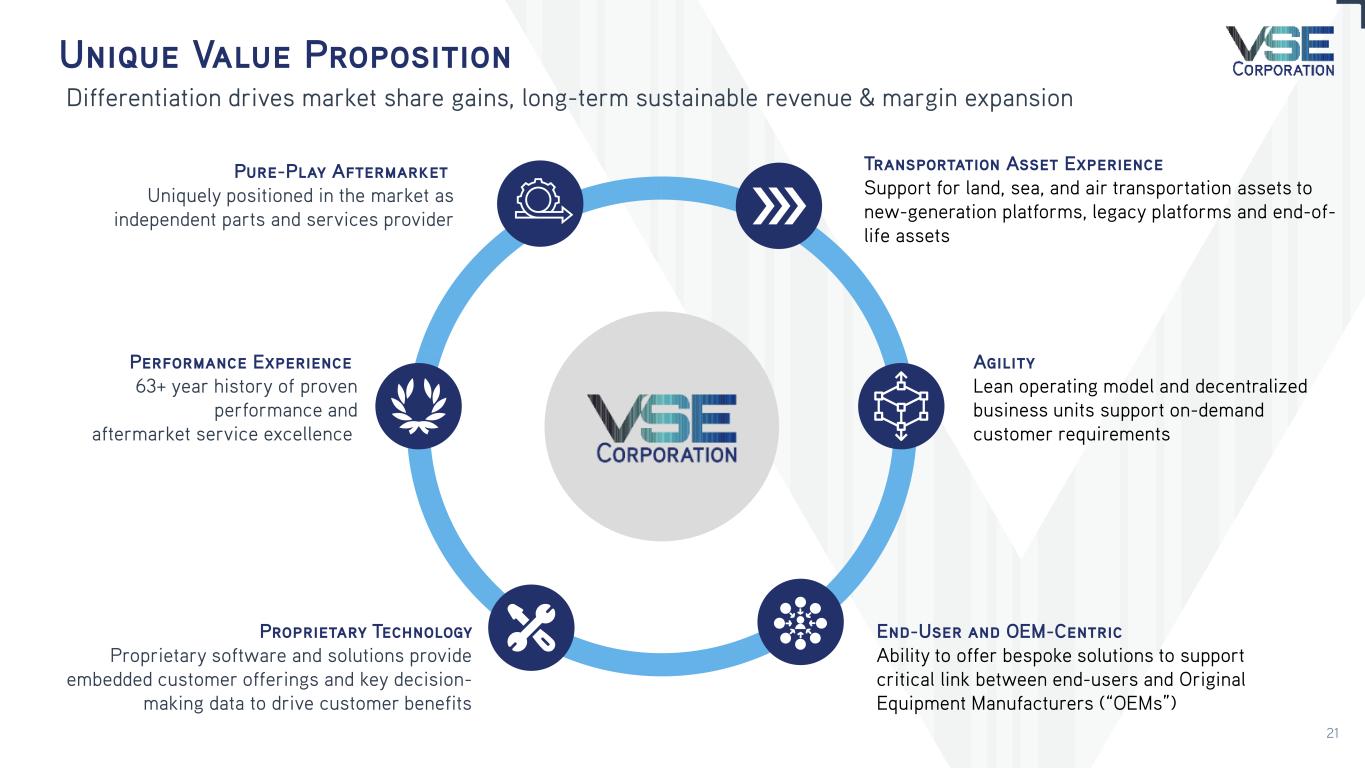 Federal & Defense Segment Overview Refocused Strategy: Higher margin, differentiated supply chain, MRO and technical services Market Expansion ▪ Increase military aviation services with products, supply chain and repair services Capability Development ▪ Broaden DoD logistics and supply chain offering to support underserved market demand International Growth ▪ Utilize success in foreign markets to support foreign military sales opportunities Consulting/Technical Expansion ▪ IT and Clean Energy consulting services Leverage Core Competency ▪ Expand base operations support for U.S. Air Force, U.S. Army and U.S. Navy Growth Drivers ✓ Transportation asset MRO services ✓ Base operations support ✓ Transportation & freight services ✓ Logistics, procurement & supply chain support ✓ Engineering & technical solutions ✓ IT & Clean Energy consulting services Key Capabilities Representative Customers 20